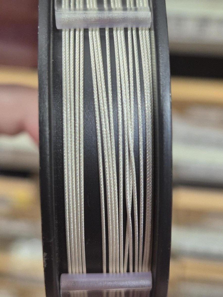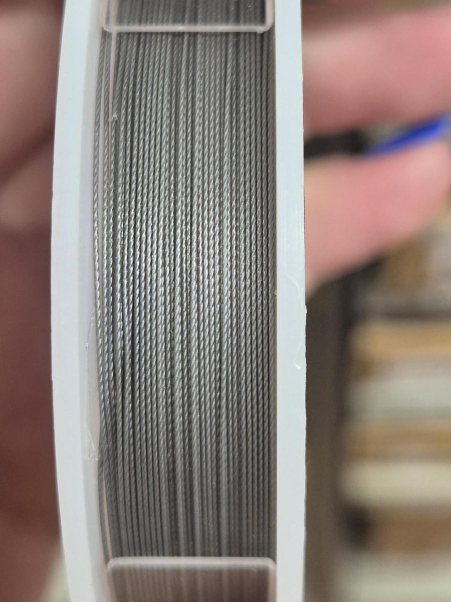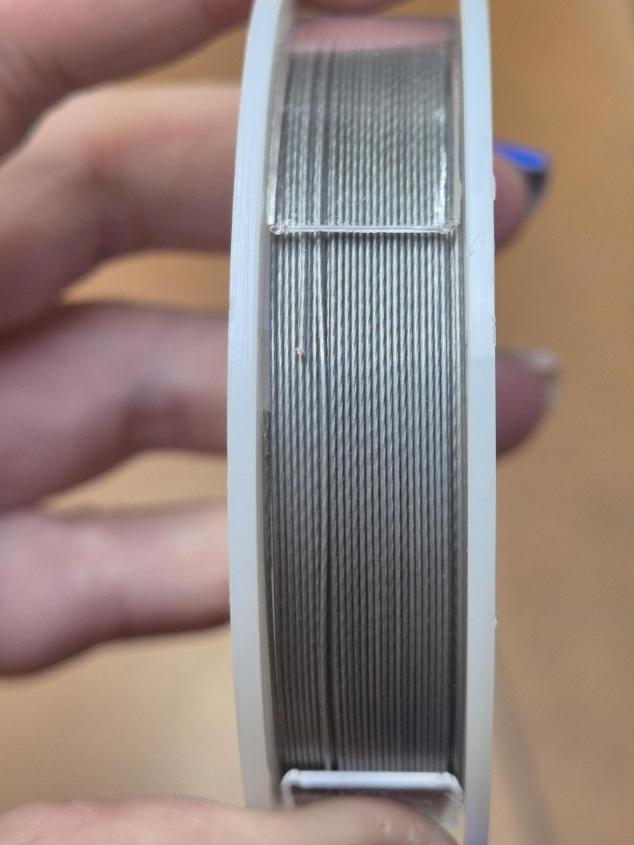 This flexible wire is made of 21 micro-woven stainless steel wires, braided together and covered with nylon. It is flexible enough to be knotted without losing its hold.