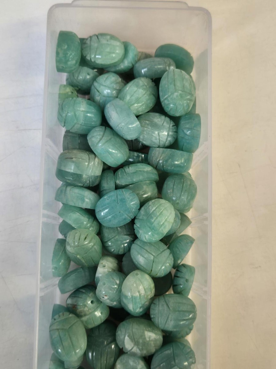 Oval gemstonebead . Original and adorable, its beetle shape has been engraved by hand. This jewelry component will surprise many!