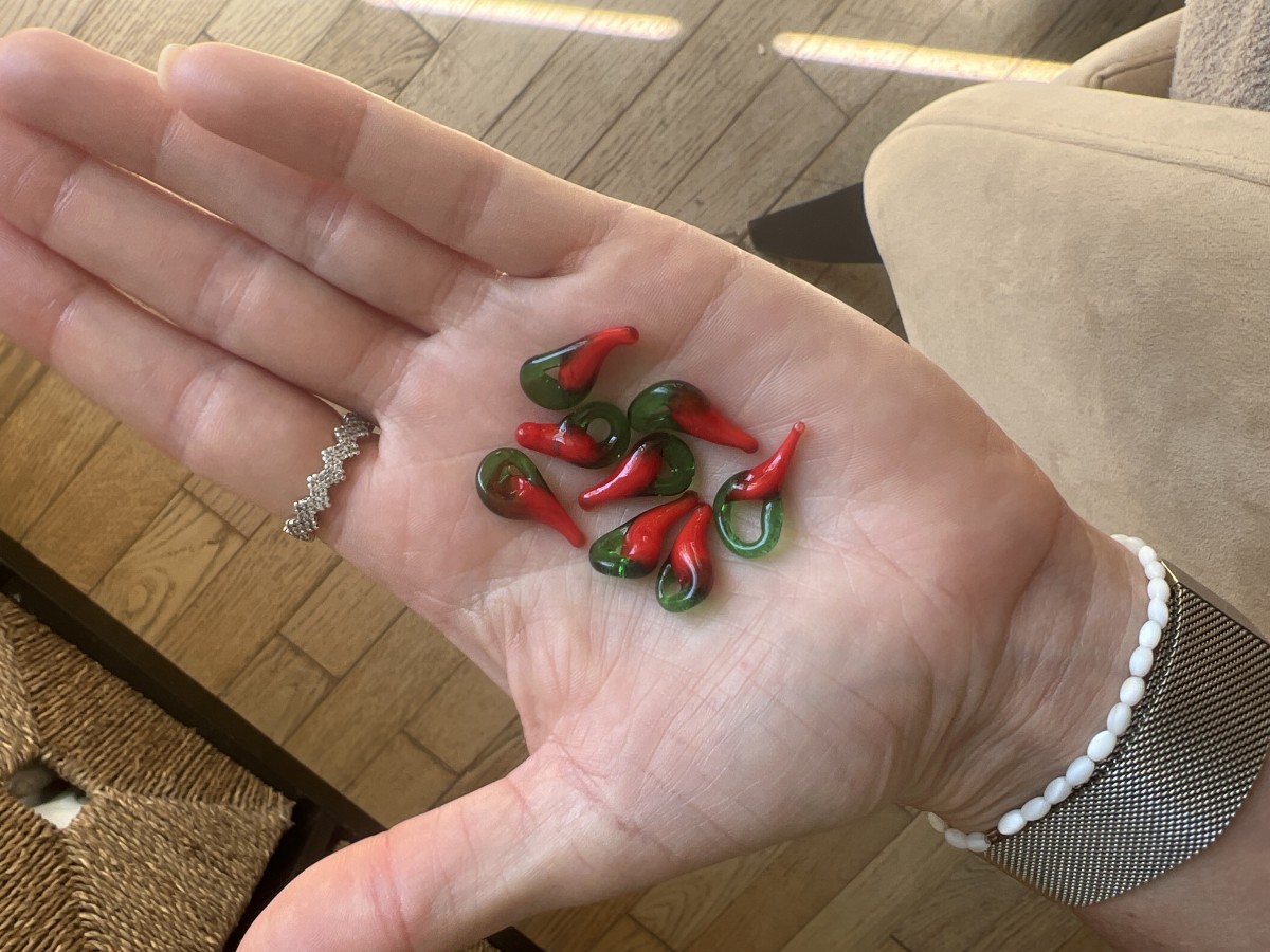 Glass charms, in the shape of a chilli pepper, to create unique DIY costume jewellery!