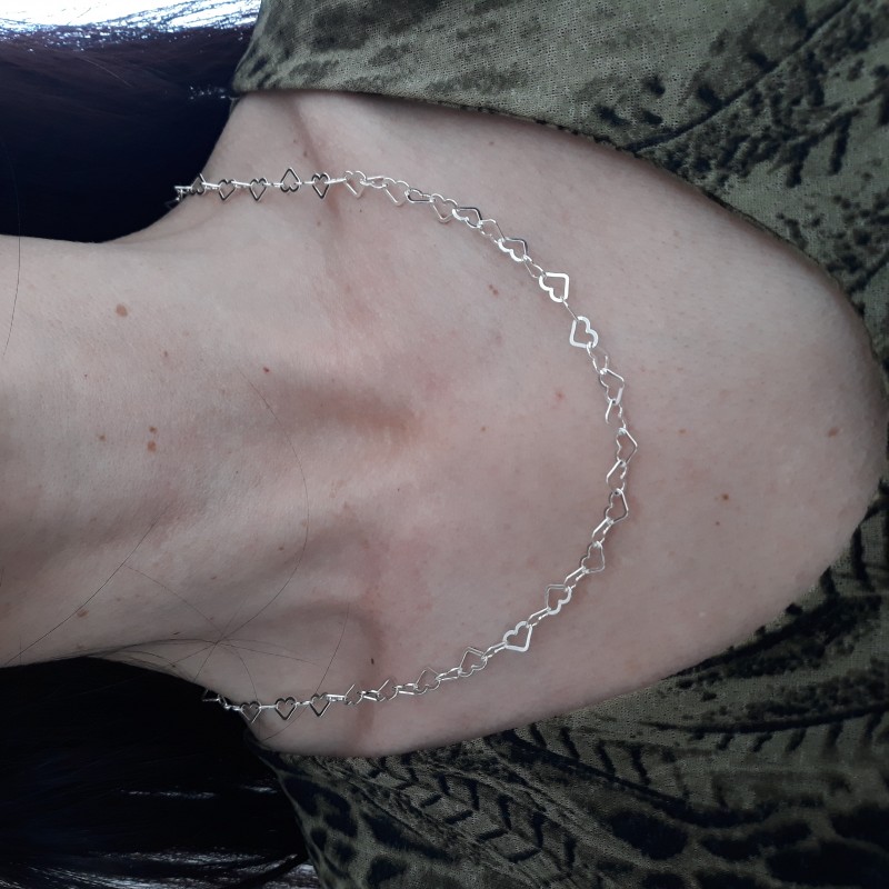 This 925 Sterling Silver (92.5% Silver) chain is made of a fancy mesh, representing hearts hooked together.