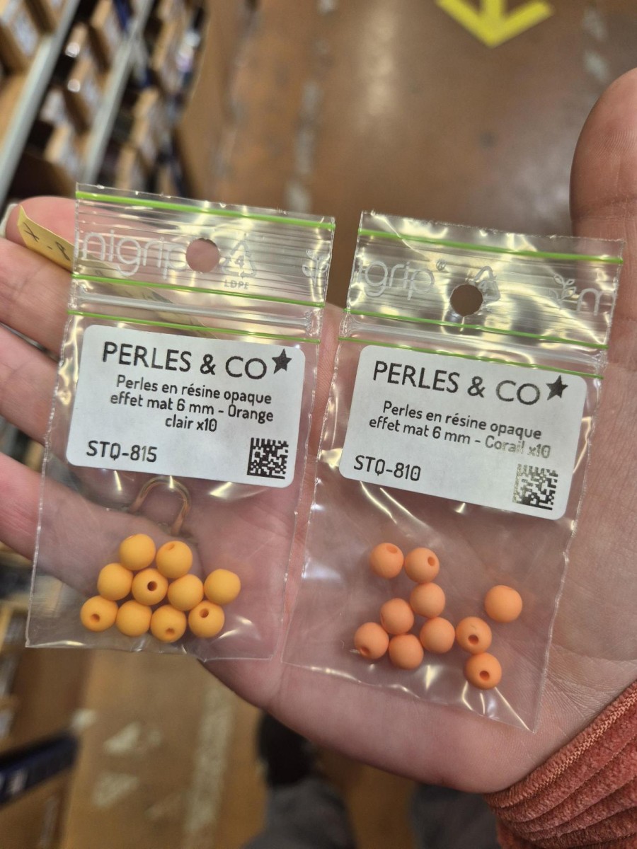 Bonjour, je vous joins en photo la différence entre les corail et les oranges clairs. Nous avons donné le nom de corail, mais ça reste une perle de couleur orange. Merci