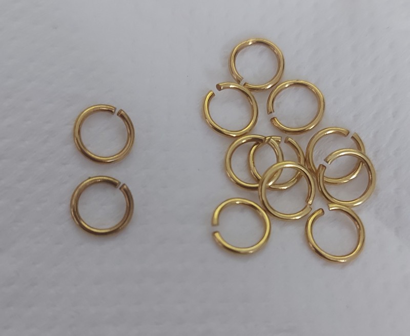 These brass jump rings are covered with a gold finish.