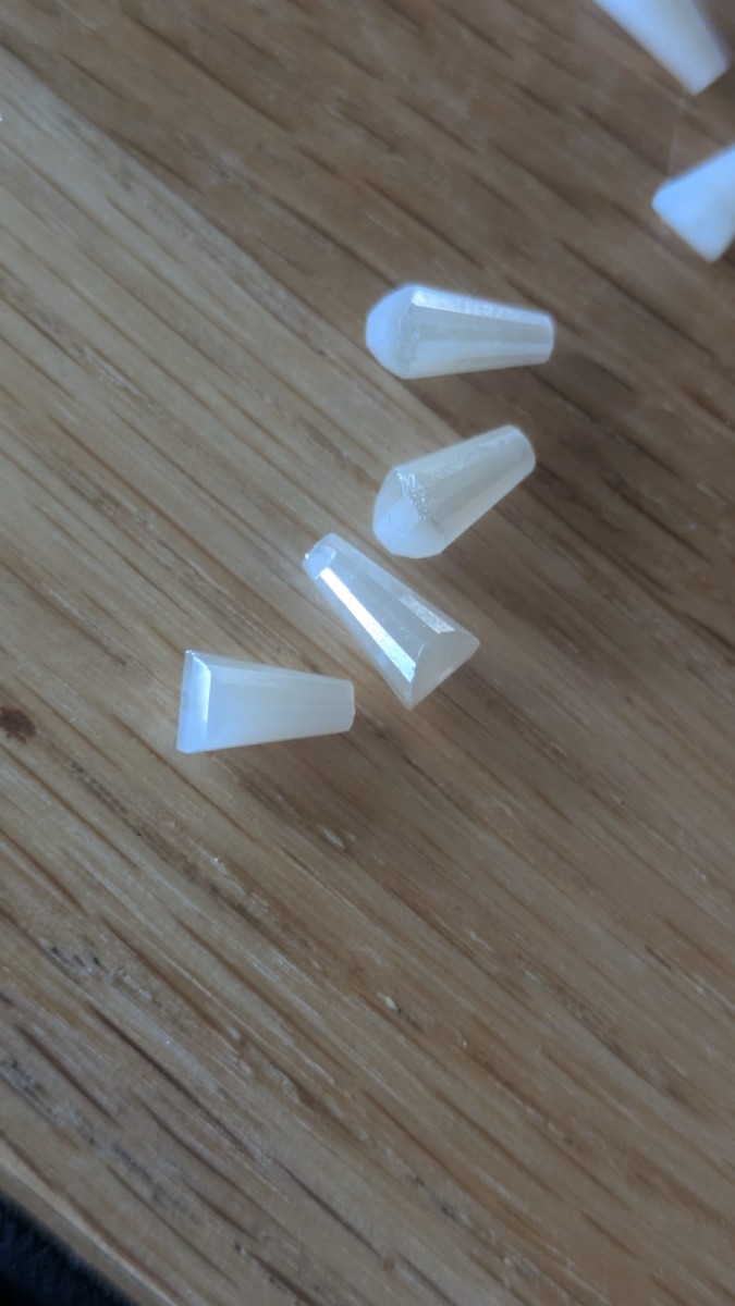 Perles de taille différente, rayées ou trouées. Je ne recommande pas (d'autant plus que le support ne souhaite pas faire de remboursement).