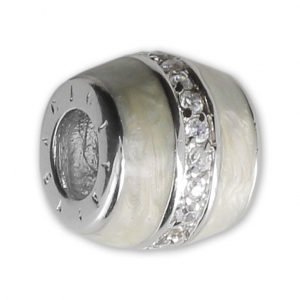 925 Sterling silver and epoxy resin bead with rhinestones, big hole.