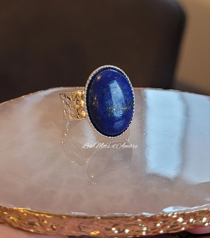 Adjustable ring in brass with a silver tone finish. Its wide hammered ring is not closed so that it can be easily adjusted to your finger.