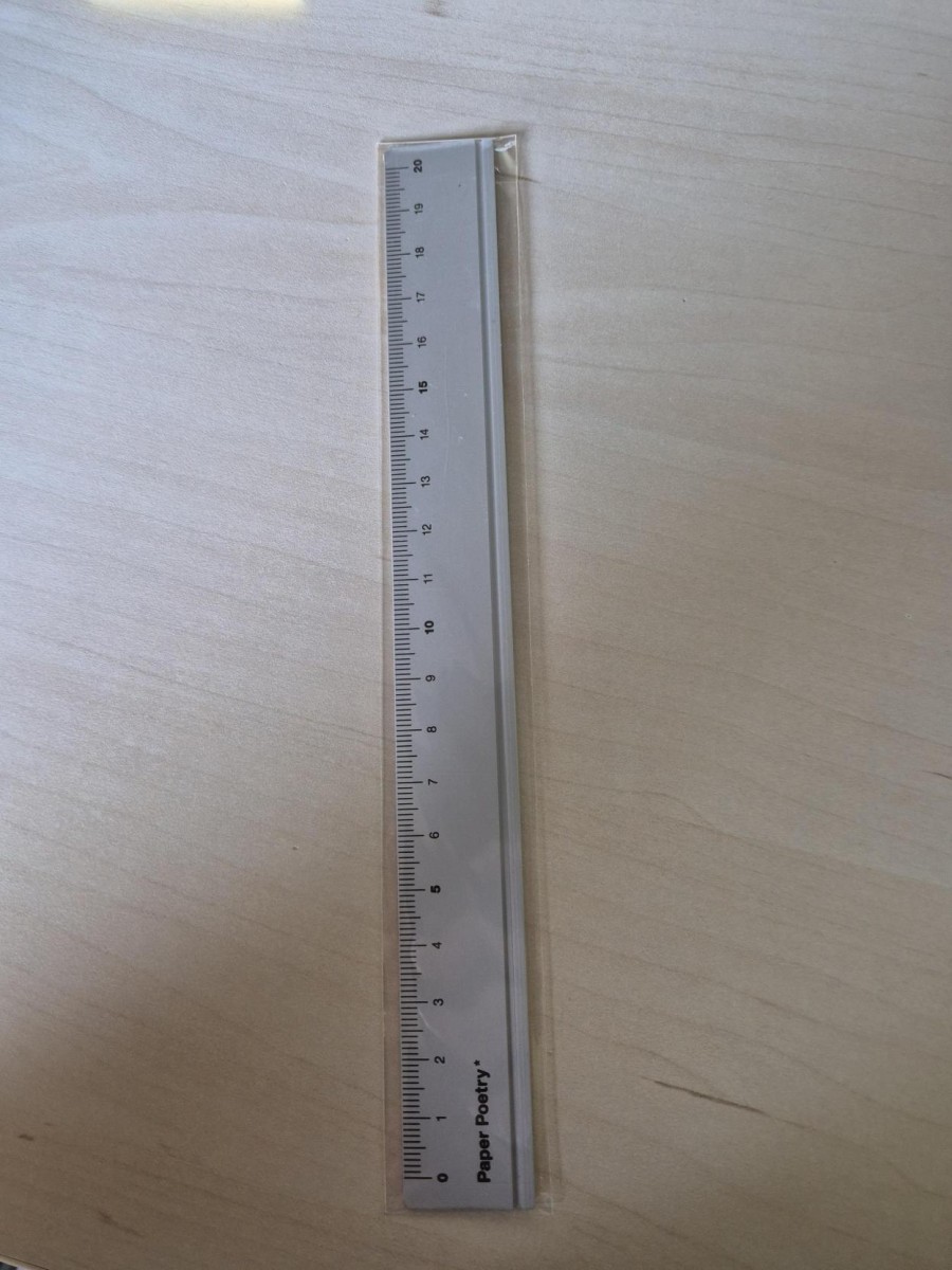 Graduated in centimeters, light and with a plastic band on its back that guarantees stability. It allows you to trace and measure your lines precisely.