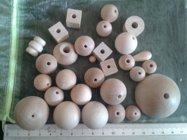 Assortment of big wooden beads with different shape and size (diameter from 5 to 25mm approximately).