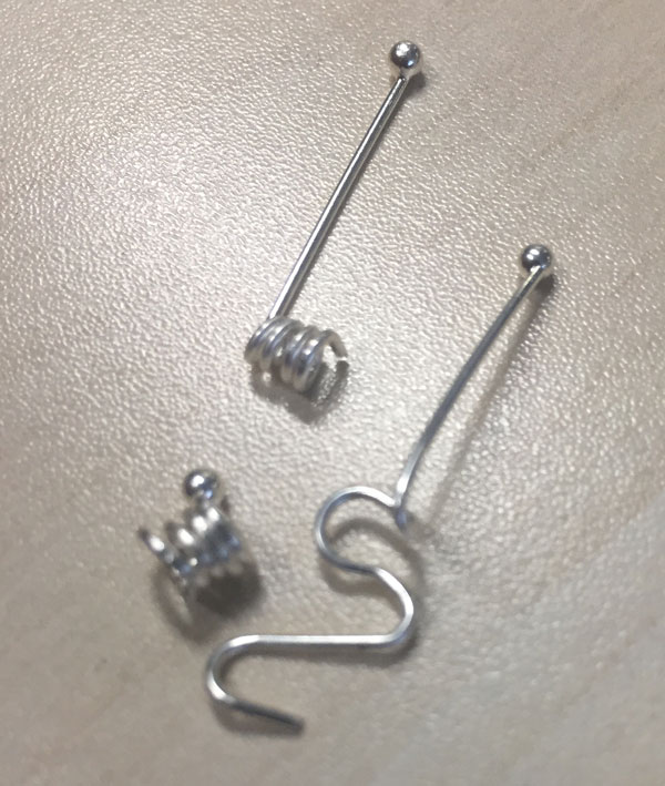 These eye pins with a small ball at the end will be used to create dangling earrings, pendants or others.