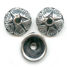 Beads caps 10 mm petal pattern - antique silver x6