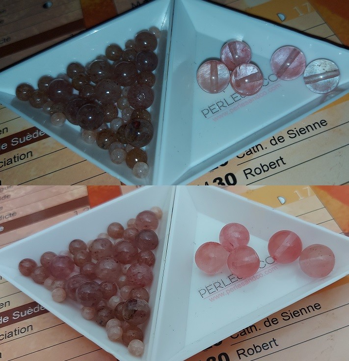Strawberry Quartz, also known as Cherry Quartz, is made in a unique glass process, then hand-cut by lapidaries who usually cut gemstone beads.