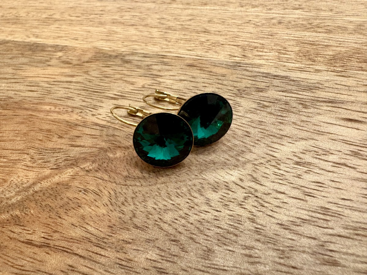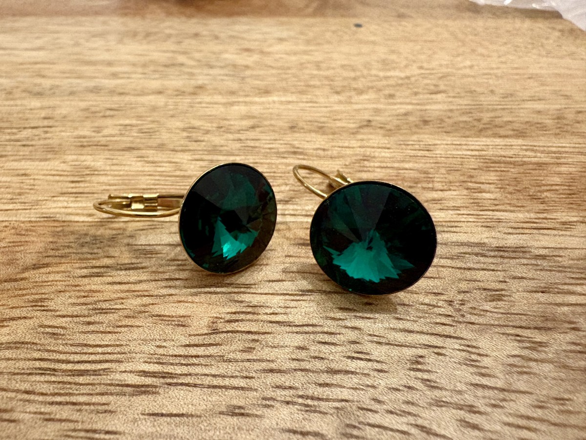 1122 Rivoli Cabochon 14mm Leverback earrings Gold tone x2