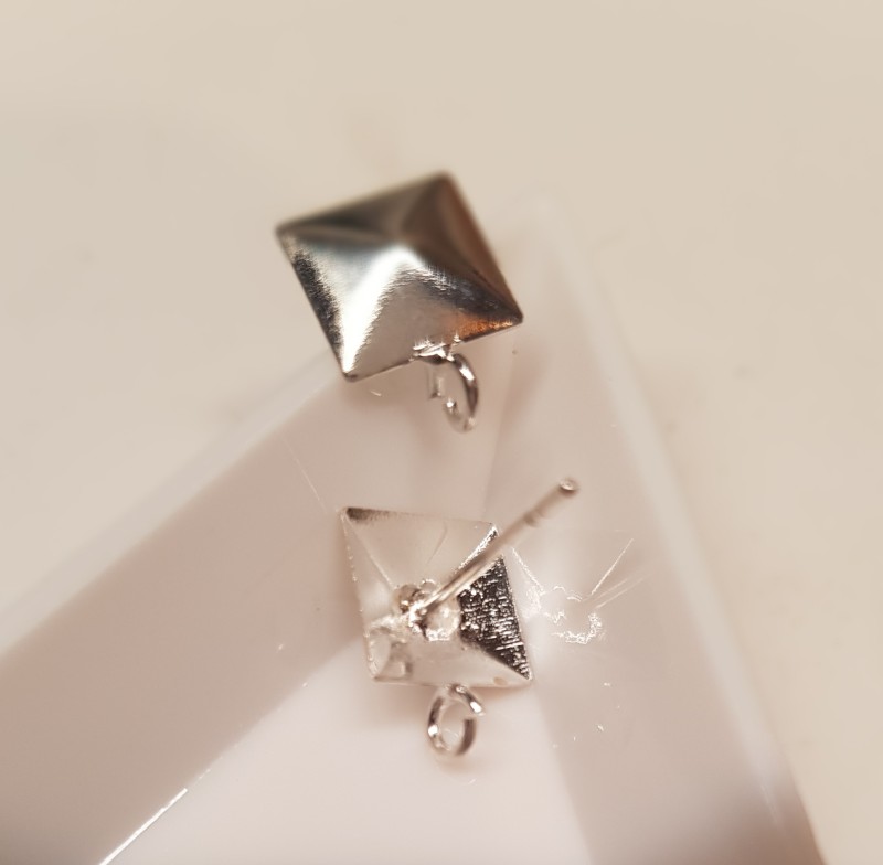 Earstuds square 8mm Silver tone x2