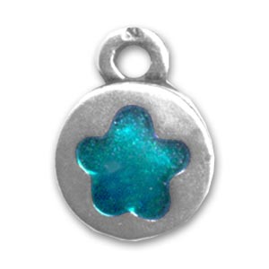 Enamelled flower charm 13mm Turquoise x1