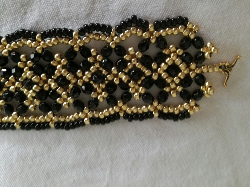 bracelet en dentelles avec des facettes jet 4 mm et des rocailles toho 8/0 or et noir