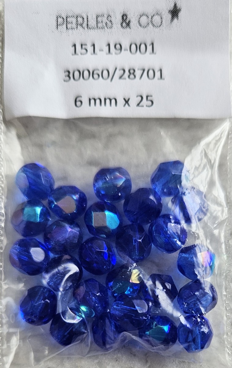 Fire Polished faceted round beads 6mm Sapphire AB x25
