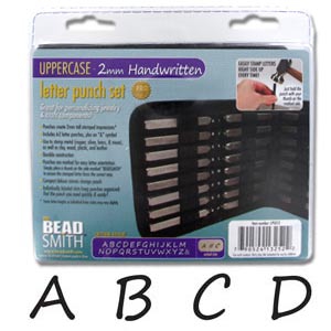 Punches create 3 mm tall stamped impressions Includes A-Z letter punches, plus an "&" symbol Use to stamp metal (copper, silver, brass, &more), as well as clay, wood, plastic and leather Durable construction Punches are marked for easy letter orientation: simply place a thumb on the side marked "BEADSMITH" to ensure the stamped letter faces the correct way. Compact deluxe canvas storage pouch individually labeled slots keep punches organized: find the punch you need quickly and easily! Some letter heights or individual letter styles may vary slightly.