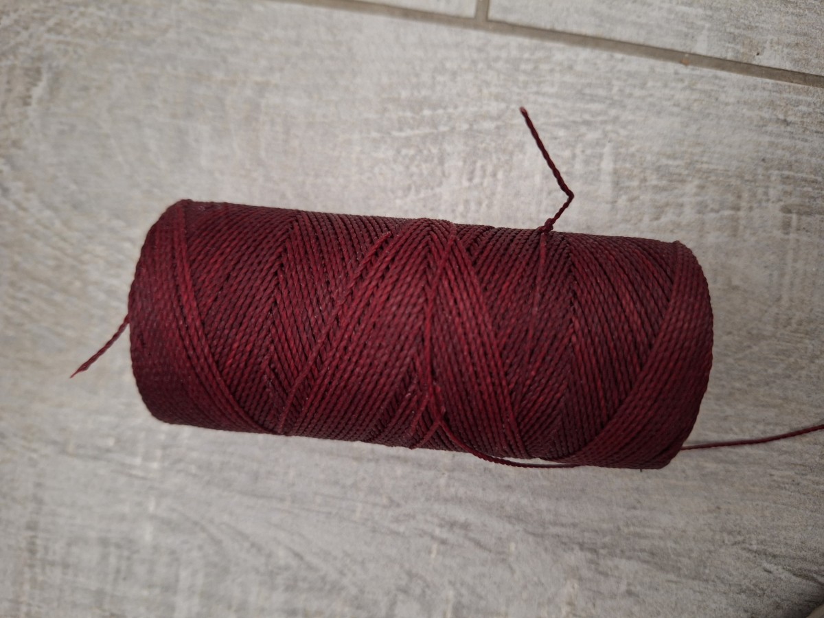 The cord is made of 4 waxed polyester strands, wound together to form a 1mm diameter thread.