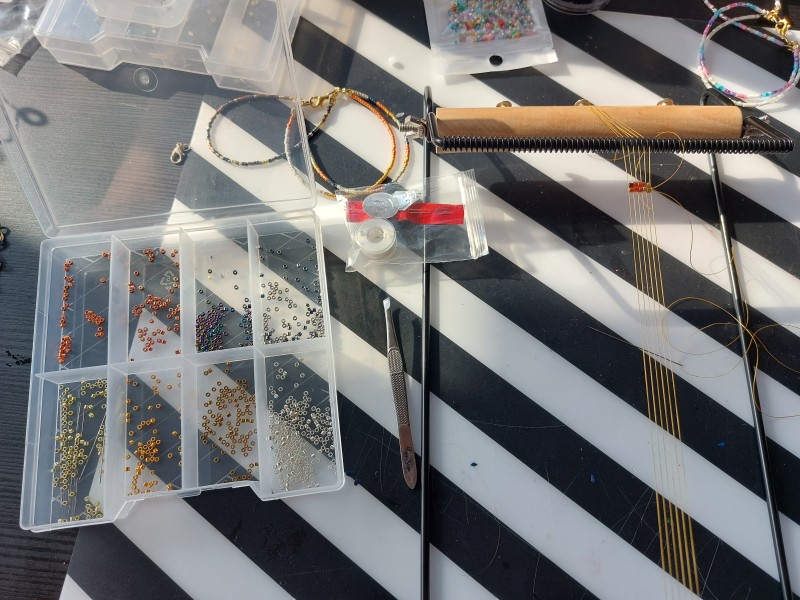 The age-old tradition of weaving, now in the palm of your hands! Beading loom is comprised of deluxe metal construction and has correctly-spaced metal thread separators. Weaving is simple and safe with no sharp edges to cut or damage thread. Using seed beads, the beading loom is perfect for creating various woven desings, from small amulet bags to long, stylish belts!