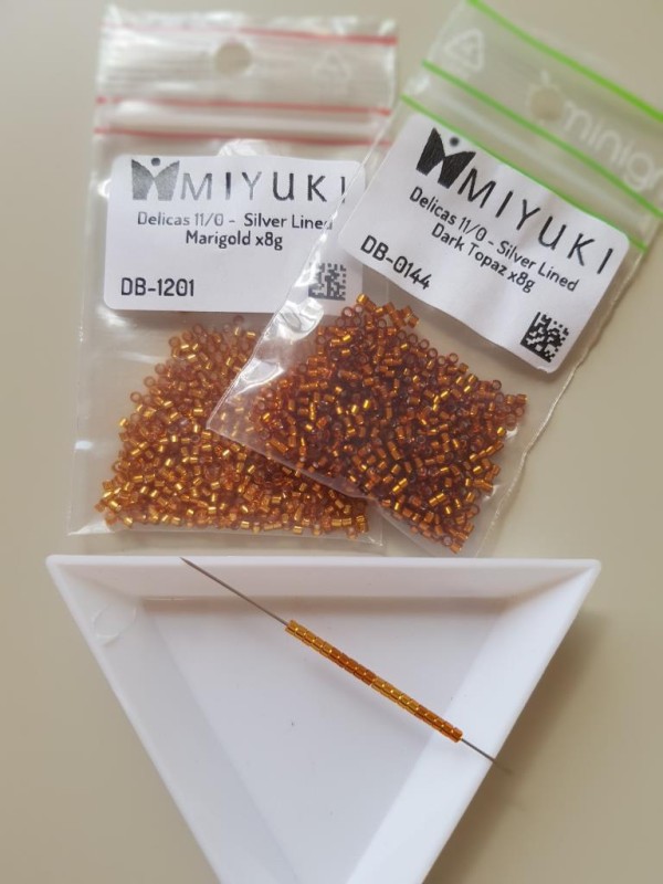 11/0 sized Japanese seed beads. (around 1.27mm height, 1.6mm diameter)e)