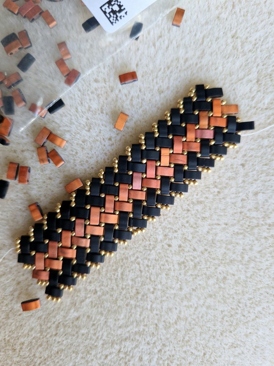 Because of the characters of TILA Beads(thin, square and double holes), Miyuki warns you to handle them very carefully to prevent beads from chipping or cracking.