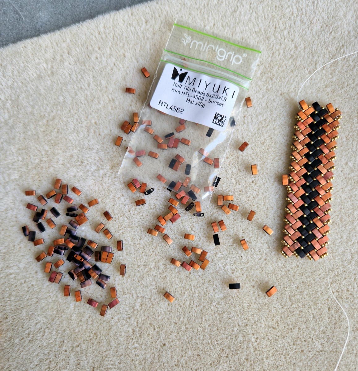 The Miyuki Half Tila Beads 5x2.3x1.9 mm, are compatible with Miyuki Tila Beads 5x5x1.9 mm.
