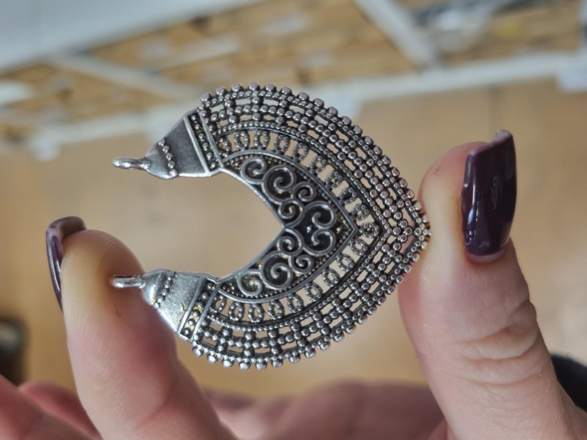 Pendant spacer 2 loops coeur ethnique 43 mmAntique Silver Plating x1