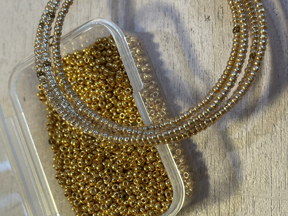 Add a precious touch to your creations with these dazzling, easy-to-thread 11/0 Gold Metallic Seed beads.