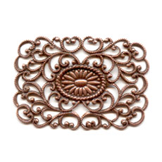Rectangular filigree finding 42x29mm Old copper tone x1