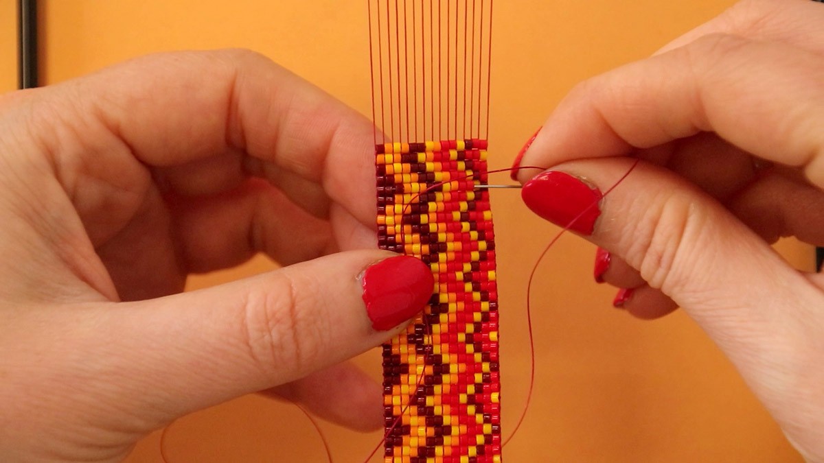 In the example video, we have taken an excerpt from the Flame Bead Bracelet tutorial. Feel free to check it out if you like the pattern. Want more information about bead weaving? Find all our bead weaving articles and tips in the Learn section.
