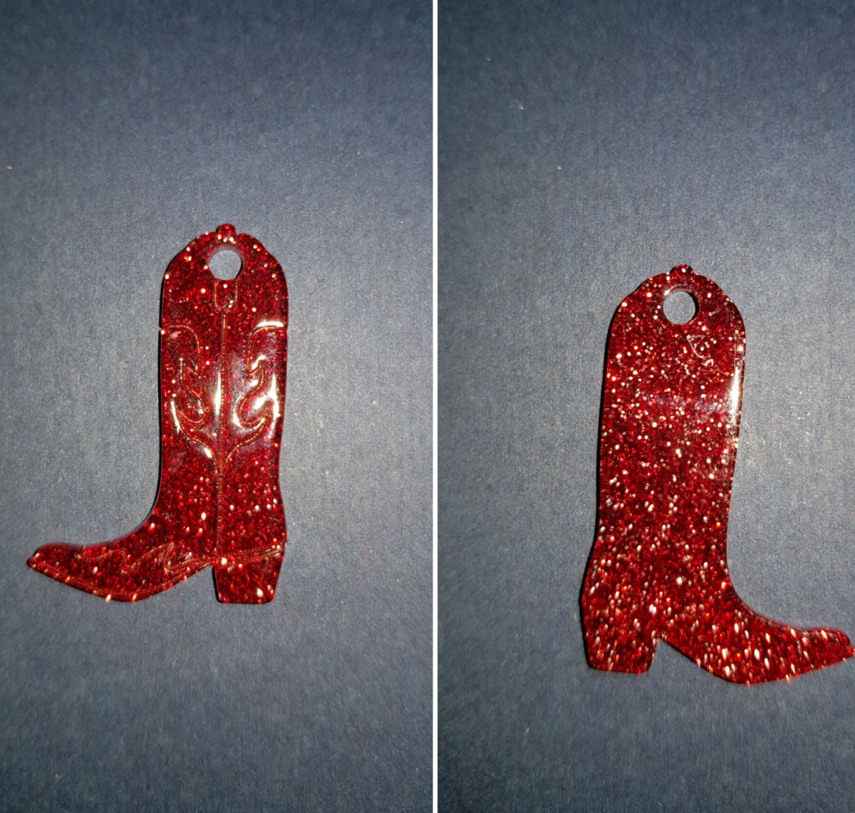 Add a touch of originality to your creations with this red glitter acrylic santiag boot pendant.