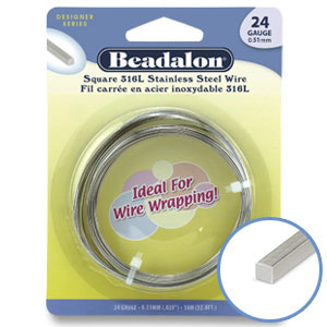 Made of Type 316L Stainless Steel, this specially tempered wire has a different feel than other half-hard materials such as Goldfilled or Sterling Silver, however it is a great alternative and is stronger. Originally available in classic Round, its now available in 1/2 Round and Square shapes necessary for wire-wrapping. This material is perfect for teaching classes and practice. Ideal for all types of wire-wrapping, weight-bearing designs, and holding designs together. Stainless Steel is harder and will work harden faster than other wires, and resembles the finish of vintage platinum.