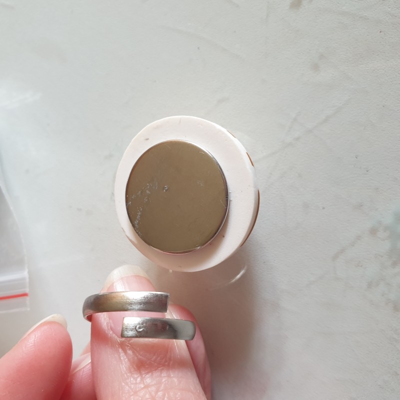 Stainless steel adjustable ring with a setting for flat cabochon of 20 mm.