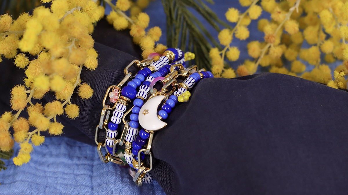 In honor of this new season, our DIY costume jewelry is also celebrating: jewelry charms that sway with movement, touches of sunny gold, light with sparkling zircons, without forgetting the most beautiful color of the season: blue.