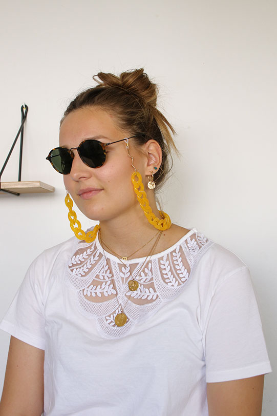The eyewear cord of the 80s is back again this year on the front of the stage and more particularly the chains of glasses with large mesh !