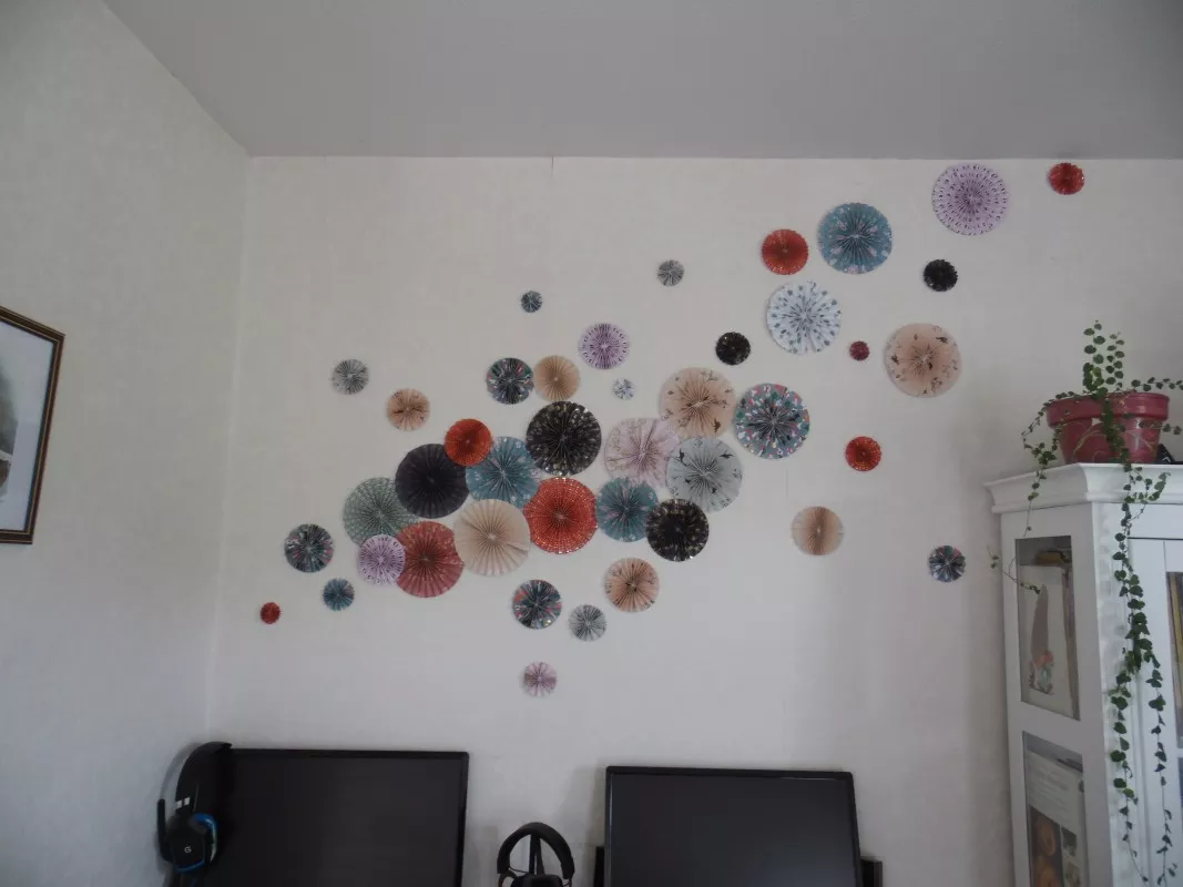 This tutorial does not require any special material other than a ruler, scissors, a cutter or scalpel to mark the folds, paper glue and string. It will add your personal touch to your room and decorate without having to fix nails to the wall . Be careful, however, to check that the fixed paste does not stain your wall, especially on the wallpaper. You can also try fixing them with double-sided tape on a painted wall.