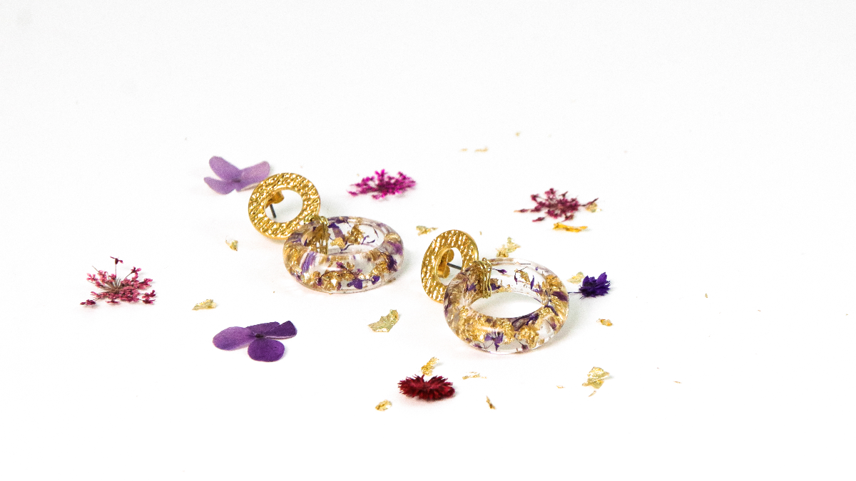 Prepare the elements to be included in the resin, the flowers are well dried and prepared for this use, if you want to use flowers that you have yourself.If you want to use flowers that you have picked up yourself, you must dry them for a fortnight in the dark, otherwise they risk rotting in the resin. Cut gold leaf flakes.