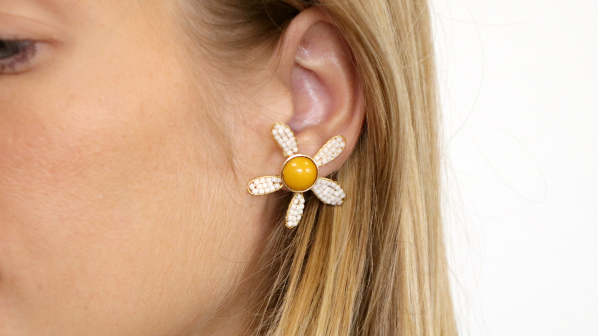 In this tutorial, we show you how to make 5 petals, but you can make more, or you can put 2 strings of petals. You can also change the color of the beads, use 11/0 seed beads or change the cabochon which comes in different colors. What is also interesting is that you can remove the flower and wear the studs with the cabochon by themselves if you feel like it. In this case, do not glue the weave to the loop.