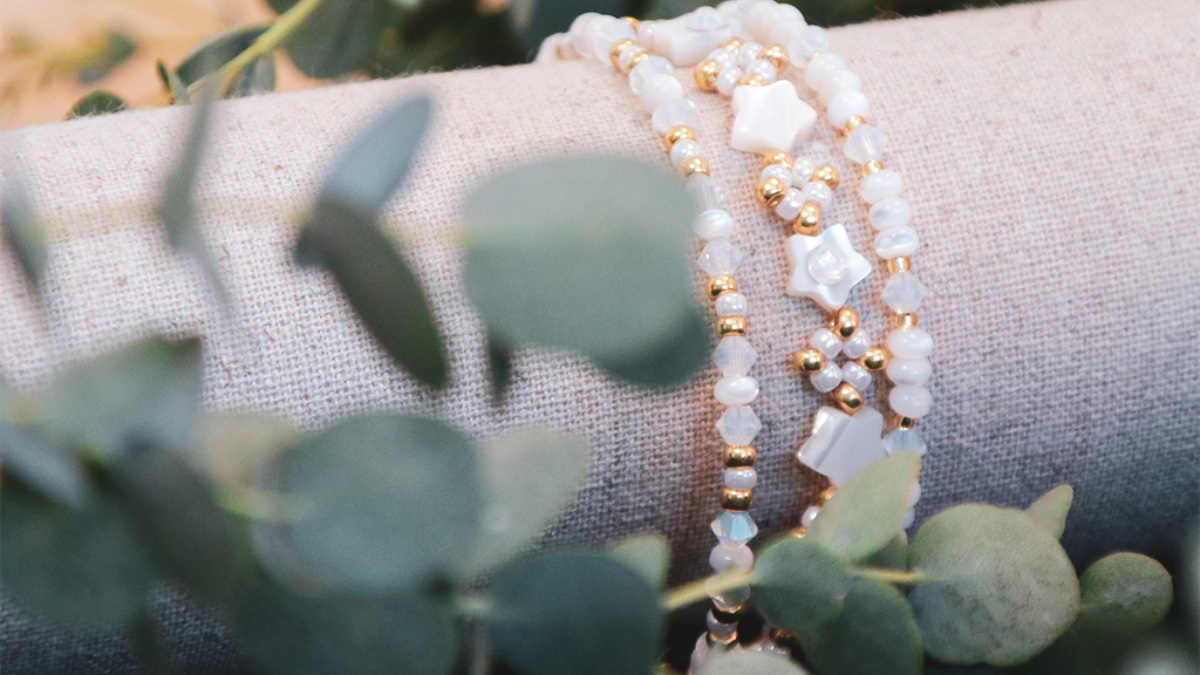 For the 1st bracelet, we will combine the POndo stich weaving and the mother of pearl stars.