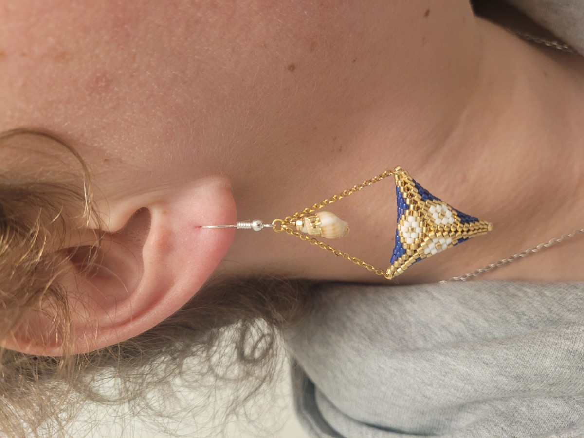 With this illustrated video, it's easy to learn how to make a pair of 3D triangular earrings woven in peyote with Miyuki Delicas beads and Swarovski bicones.