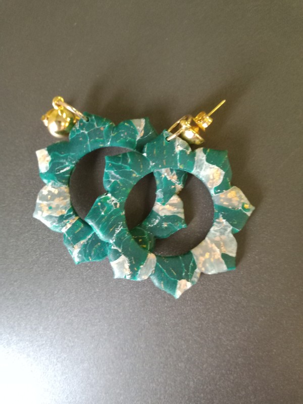 Find in this tutorial one of the most beautiful technique of imitation with polymer clay, the stone effect . You will compose your own stone color by making a non-homogeneous mixture of translucent white paste and opaque emerald green paste. You will use real gold leaf and acrylic paint to obtain your pattern.