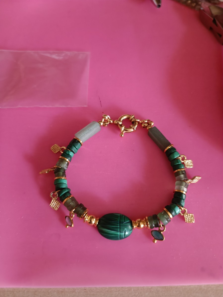 Bonjour, le diamètre interne de ce bracelet est d'à peu près 16,5 cm. Comme il vaut mieux que le bracelet ne soit pas trop serré, il convient plutôt à un poignet de 15,5 cm. Pour déterminer la longueur de fil à couper, il faut faire la longueur de son tour de poignet + 1 cm d'aisance pour un bracelet avec des petites perles ou + 2 à 3 cm pour un bracelet avec des perles moyennes comme ici. Plus les perles sont grosses et plus il faut prévoir de fil. Pour les finitions avec le fermoir, il faut prévoir au moins 5 cm de chaque côté. Ce qui revient ici à la longueur de fil minimum suivante : taille de son tour de poignet + 12 cm.