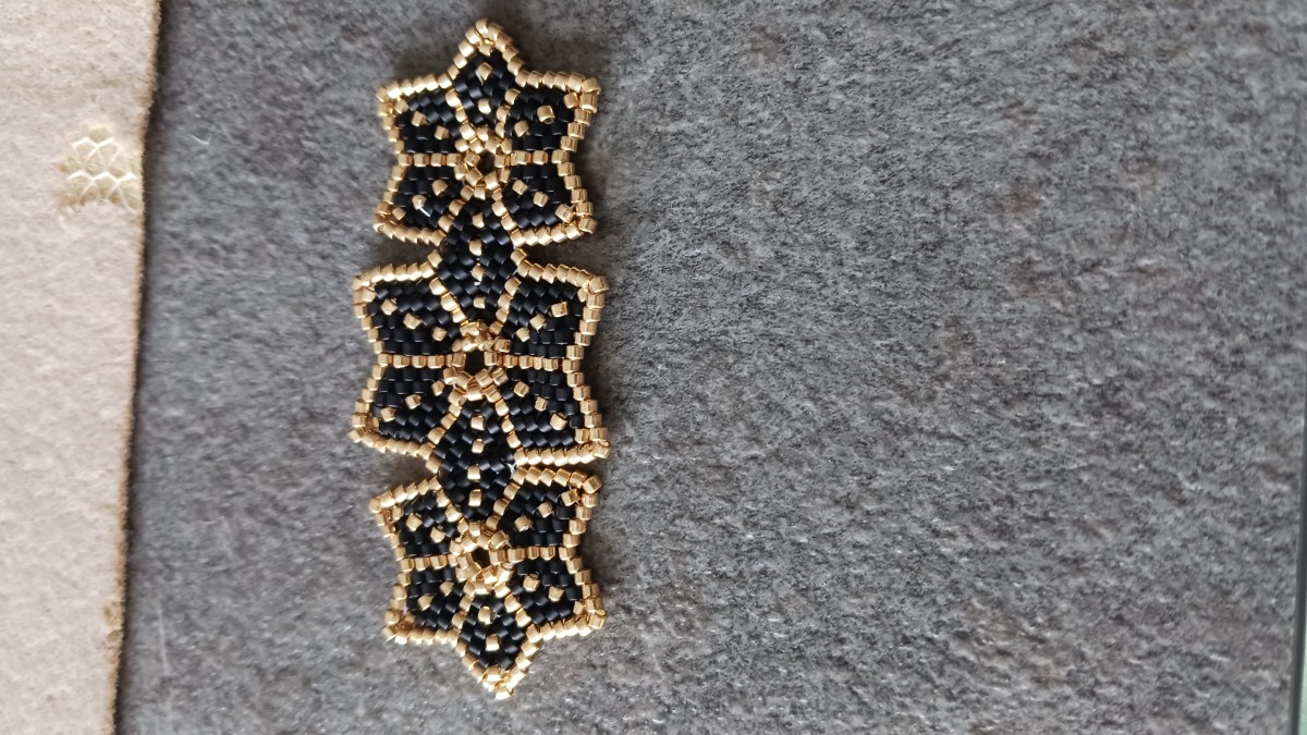 Continue weaving following the peyote star pattern. Caution. The two stars on the sides are smaller.