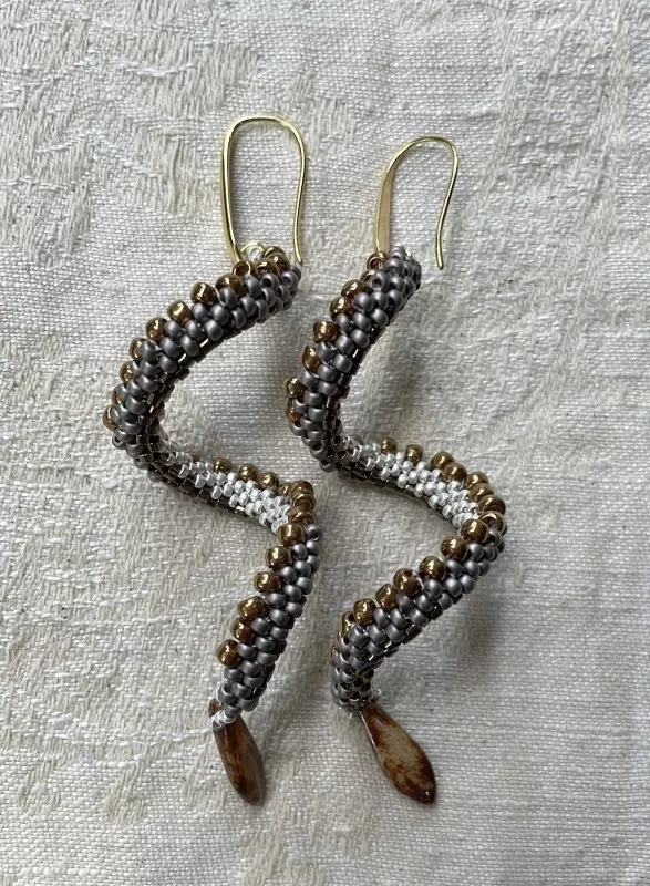 Schema  Cellini flat spiral-effect peyote weave pendant earrings