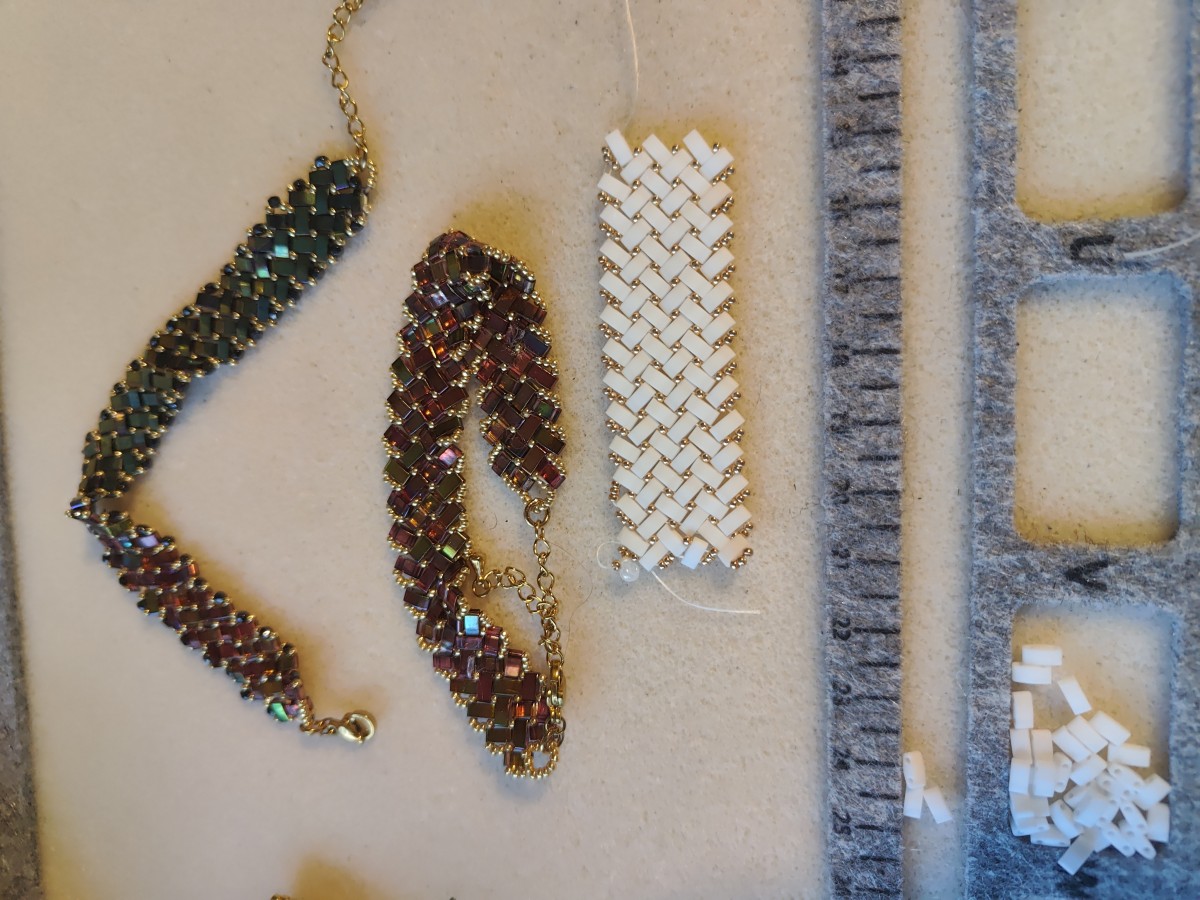 - tighten the elastic thread evenly with each row, otherwise the bracelet may wobble