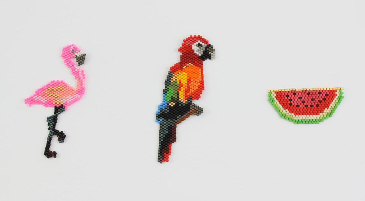 You can also find the weaving charts for a beaded parrot and a pink flamingo.