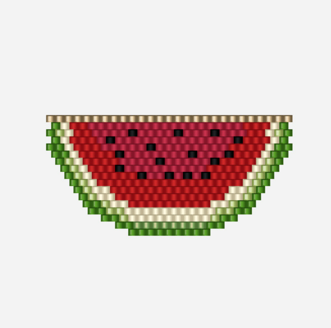 Create a pretty watermelon with bead weaving using the brickstitch technique. You can use this technique sheet to learn how to make increases and decreases in Brickstitch weaving.