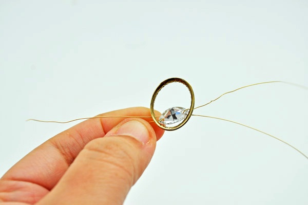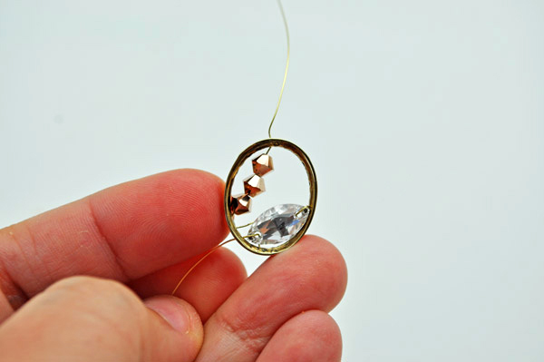 Then attach the bicones to the ring like this. Continue this step for the entire circumference.